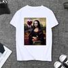 Sommer Parodie Mona Lisa Trinken Bier Print T-Shirts Damen Ästhetik Lustig Lässig Kurzarm Tops Weiblich Ärmellos Harajuku