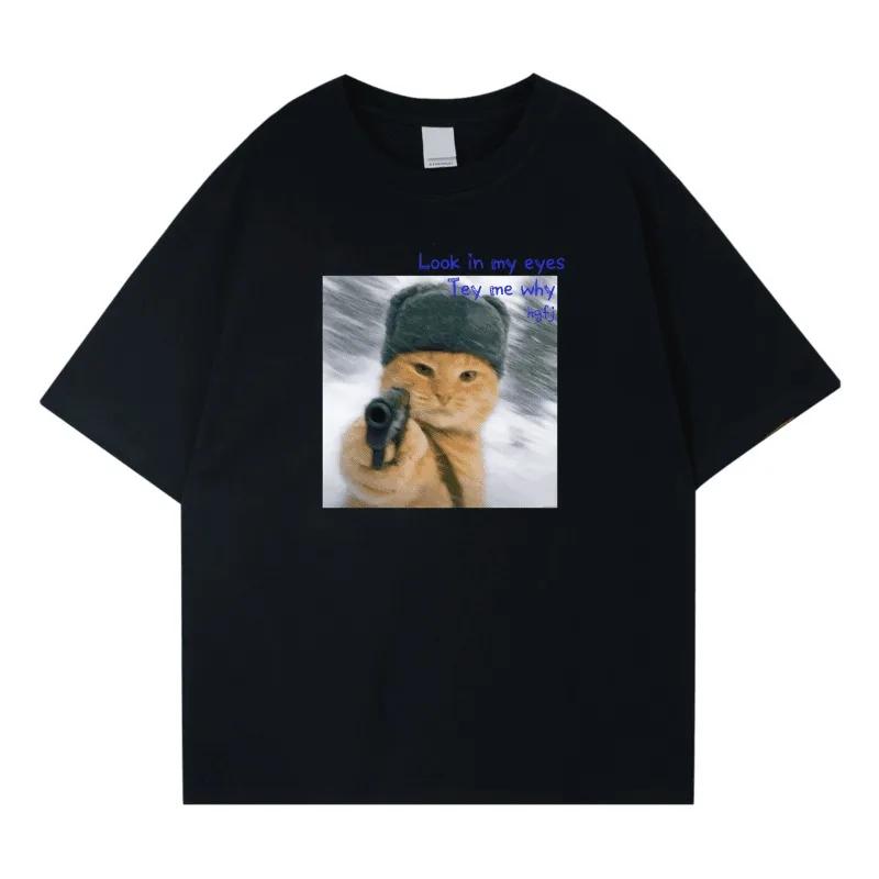 New Century Cat Grafik T-Shirt 2025 High Street Sommer Unisex Streetwear Rundhals Lässige Kurze Ärmel Damenbekleidung