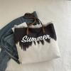 Fransentasche mit großer Kapazität Strandtasche Damen Schulter-Tragetasche lässiger Lazy-Wind Kontrastfarbe Handtasche