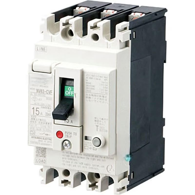Mitsubishi NV63-CVF 3-poliger Fehlerstrom-Schutzschalter, 15A, 30mA, AL-1LS (Alarmschalter), SLT (Vertikaler Anschlussklemmenblock), AC100-440 NN