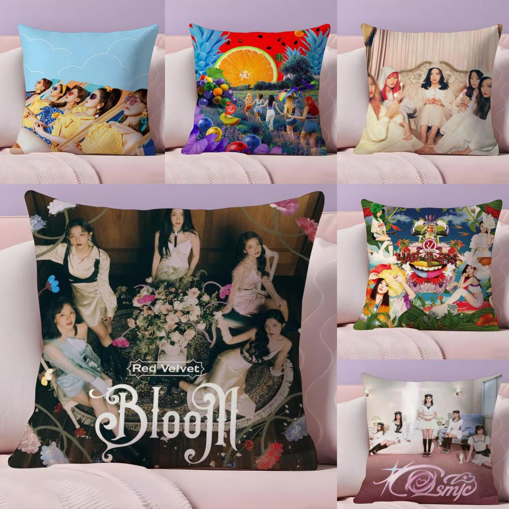R-rot V-Samt Girlgroup Album Kissenbezug Seidig Kurzer Plüsch mit Unsichtbarem Reißverschluss Staubdicht Sofa Kissenbezug für Heimdeko