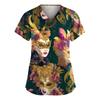 Damenmode V-Ausschnitt Kurzarm Arbeitskleidung mit Taschen Karnevals-Print Oberteil Pflegeuniform