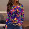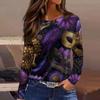 Damen Modisch Lässig Hals Langarm Saum Schlitz Karneval Print T-Shirt Top