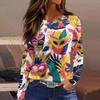 Damen Modisch Lässig Hals Langarm Saum Schlitz Karneval Print T-Shirt Top