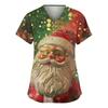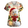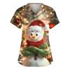 Damen Modische V-Ausschnitt Arbeitskleidung Weihnachten Bedruckt Kurzärmlig Tasche Seitenschlitz Arbeitskleidung Basic Pullover Top