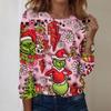 Damenmode, lässig, langärmelig, bedruckt, Rundhalsausschnitt, Pullover, Top, Bluse