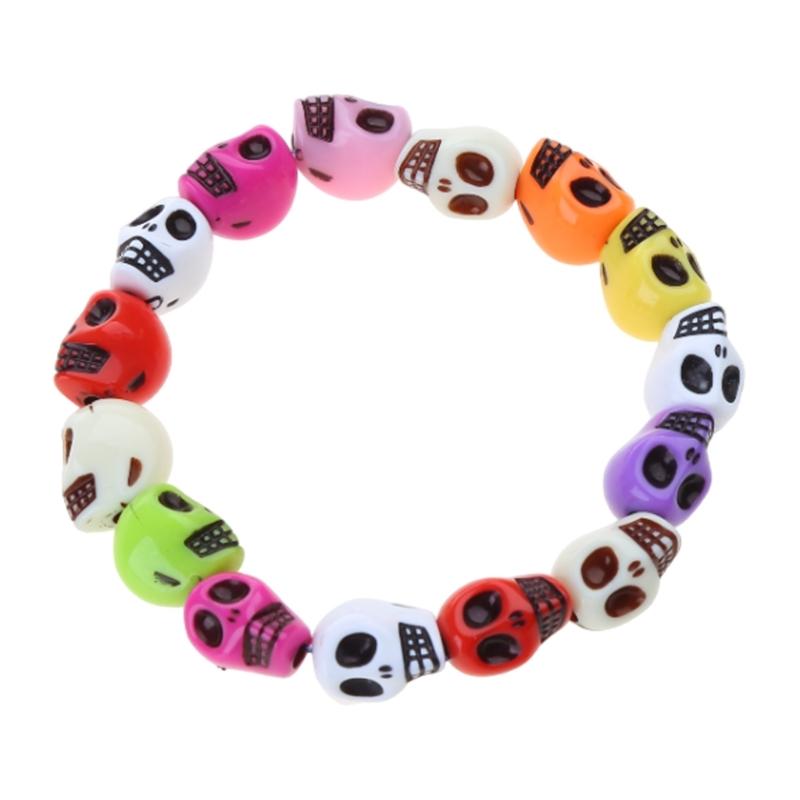 Das Totenkopfarmband besteht aus Acryl und elastischem Faden, hypoallergen, Anlauffest, geeignet für langfristiges Tragen.