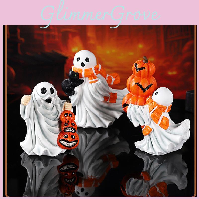 Halloween Ghost Pumpkin Figurine With Resin Craft For Seasonal Decor And Gift Ideas