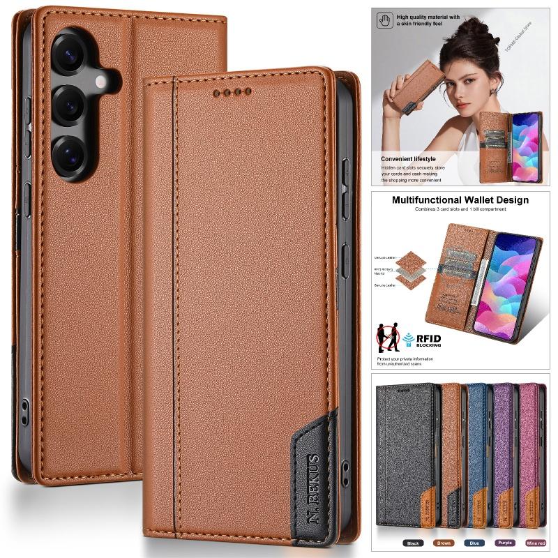 Magnetische Diebstahlschutz-Bürste Leder-Geldbörse Karten-Handyhülle für Samsung Galaxy S25 Edge S24 Ultra S23 Plus S22 S21 S20 FE S10 Hülle