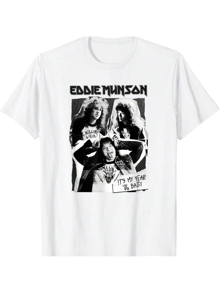 Eddie Munson Band Grafik Damen Baumwoll T-Shirt, Premium Baumwollqualität Druck, Langlebig und Langlebig, Lässig und Modisch