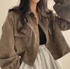 Damen Frühling Vintage Kragen Einfach geknöpft Cordhemd Unifarbe Langarm Jacke