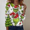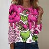 Damenmode, lässig, langärmelig, bedruckt, Rundhalsausschnitt, Pullover, Top, Bluse