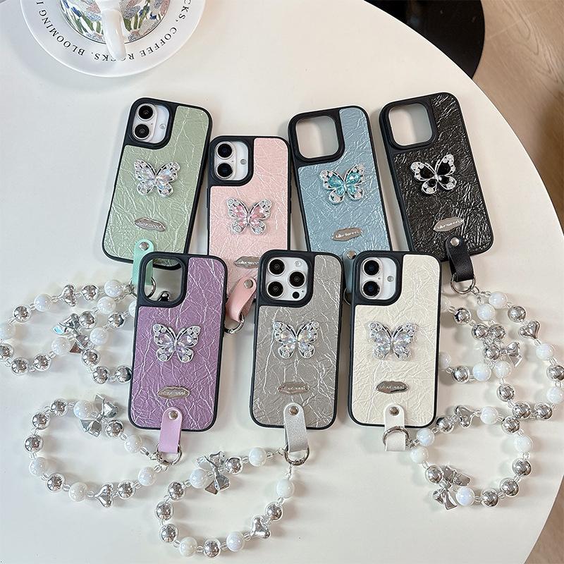 Strass Schmetterling High-End Kette Handyhülle für 15 für Apple 17 Handheld für IPhone16pro Leder Mode