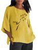 Damenmode Rundhals Print Shirt Frühling&Sommer 3/4 Langarm Top Damen Baumwolle Leinen Bluse