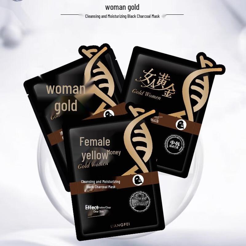 Liangfei Damen Gold Schwarz Aktivkohle Maske 5er-Set