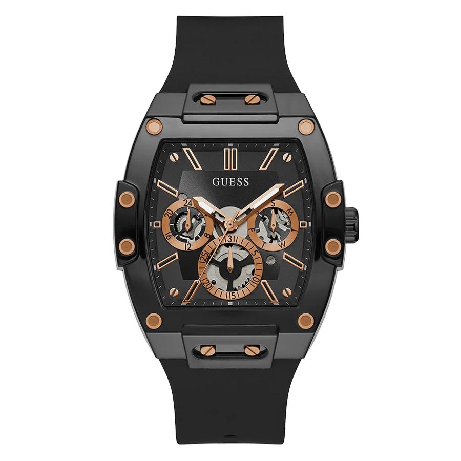 Multifunctional men's quartz watch with a yellow silicone strap and a black rectangular dial, a casual watch model GW0203G8