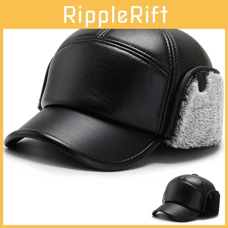 Winter Herren Kunstlederhut mit Ohrenklappen für Wärme und Windschutz