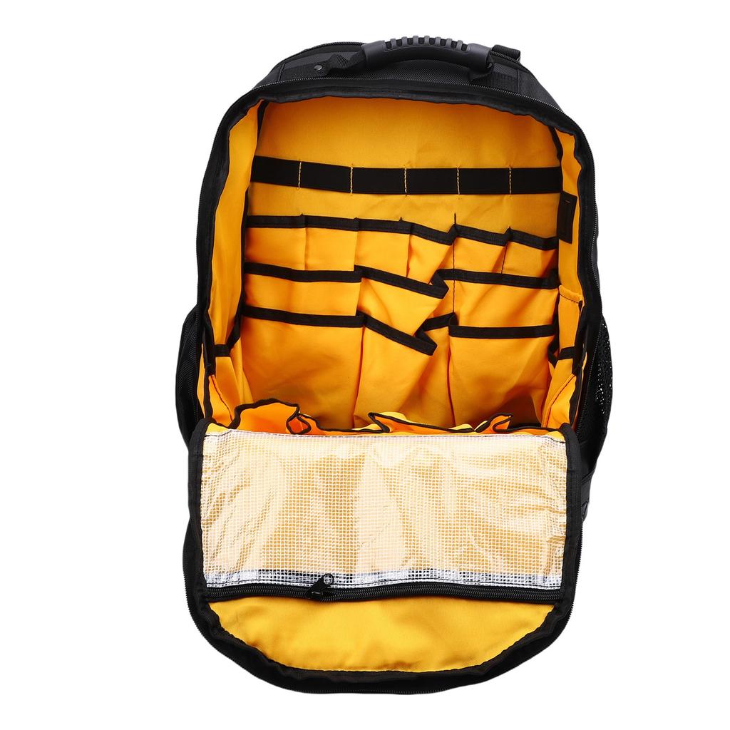 Werkzeugrucksack Mehrere Taschen Gepolstertes Laptopfach Oxford-Gewebe Harter Boden Werkzeugtasche mit Beutel Typ-C-Kabel