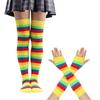 Rainbow Stripe Thigh High Socks Gloves for Female Christmas Party Costume Accessories Stretchy Warm Socks Cosplay Props
