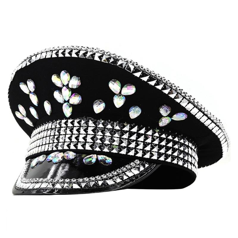 Mit Juwelen besetzte Kapitänsmütze Kristalle Matrosenhut für Disco House Cocktailpartys Urlaub Funkelnde Kristalle für Braut