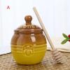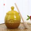 Kreatives Cartoon-Muster Vintage Keramik Honiggläser mit Holzrührstab Küchenorganizer und Lebensmittelaufbewahrungsbehälter