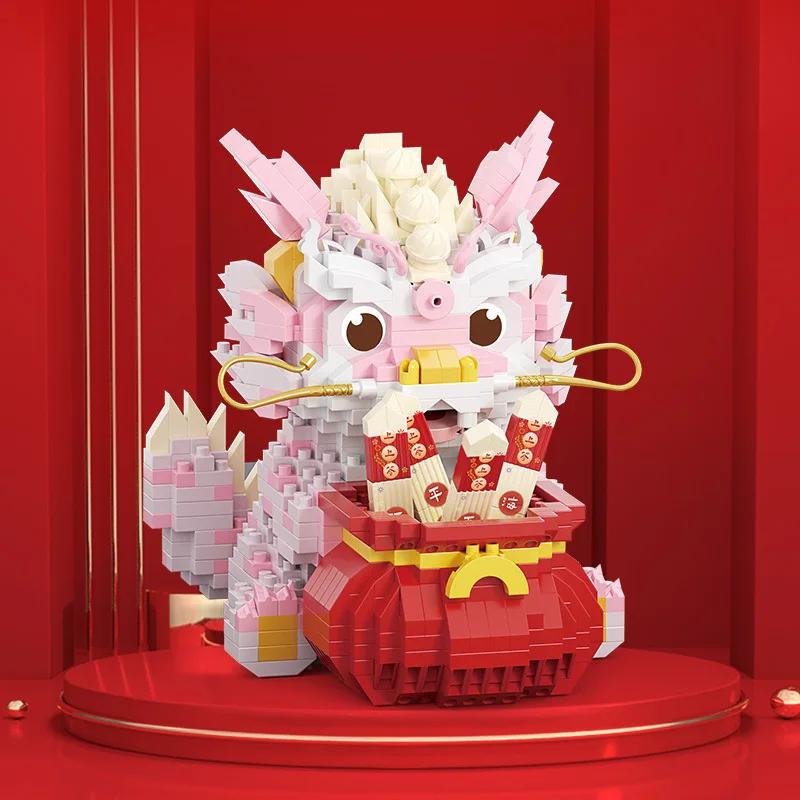 Chinesischer Neujahrsstil Löwentanz Drachenjahr-Serie Zusammenbau Mikropartikel-Bausteine Desktop-Dekoration Modell Spielzeug Geschenk