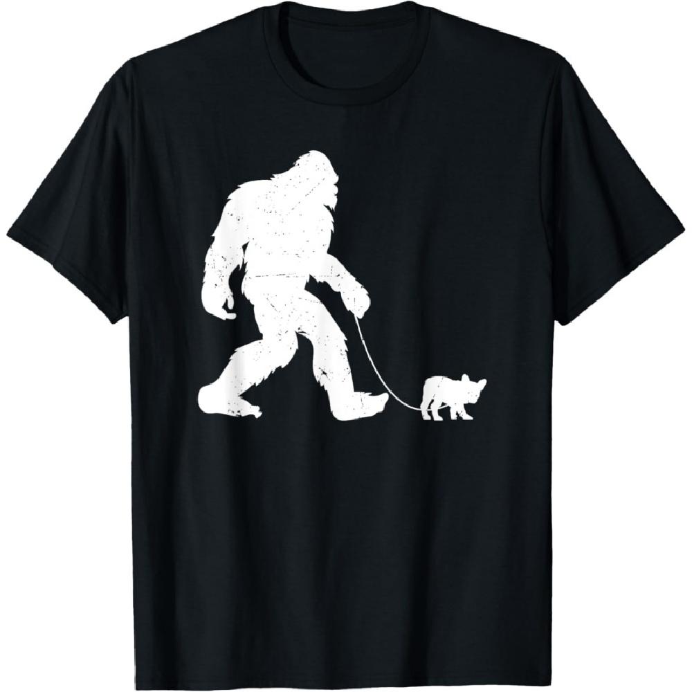 Bigfoot spaziert mit einer französischen Bulldogge lustiges T-Shirt