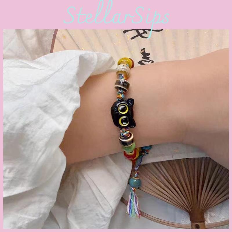Unique Design: Features an eye-catching black cat ceramic charm, perfect for animal lovers and zodiac enthusiasts.