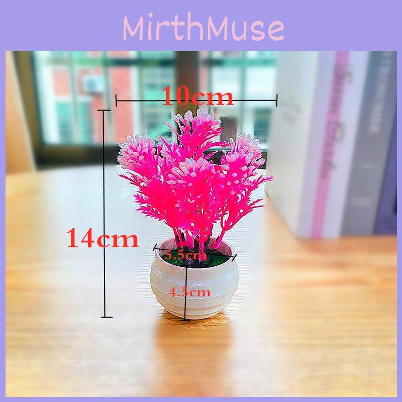 Artificial Green Plant Small Bonsai With Injection Molded Plastic Flowers For Desk Decor