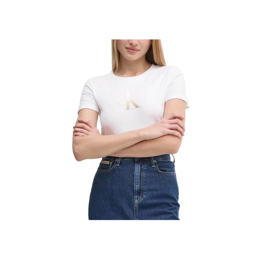 Calvin Klein Letter Print Slim Fit Round Neck Short Sleeve T-Shirt Women Tops White J20J224982-YAF