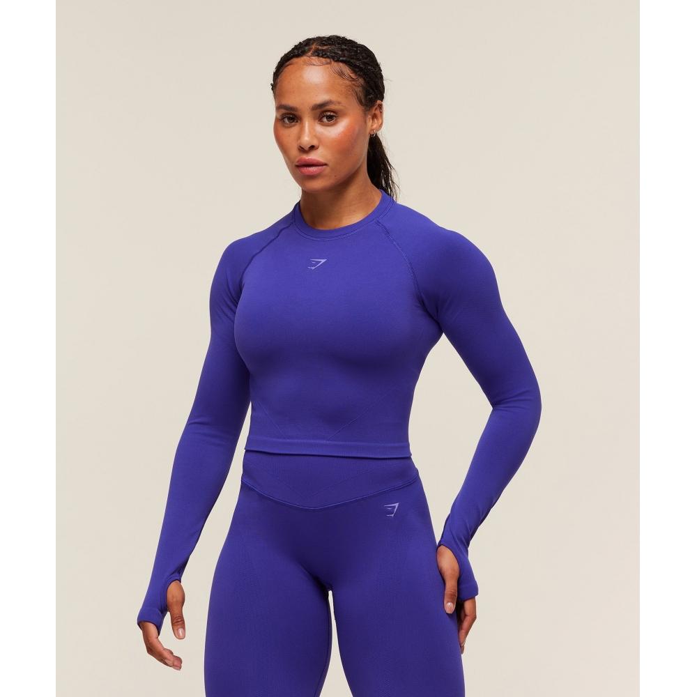 Gymshark Activate Long Sleeve Crop Top Cobalt Purple B2c4q Pbqf