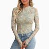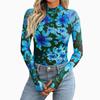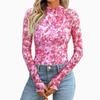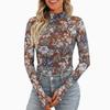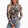 Leopardenmuster Mock-Neck T-Shirt, Essentielles Langarm Slim Top für Frühling & Herbst, Damenbekleidung