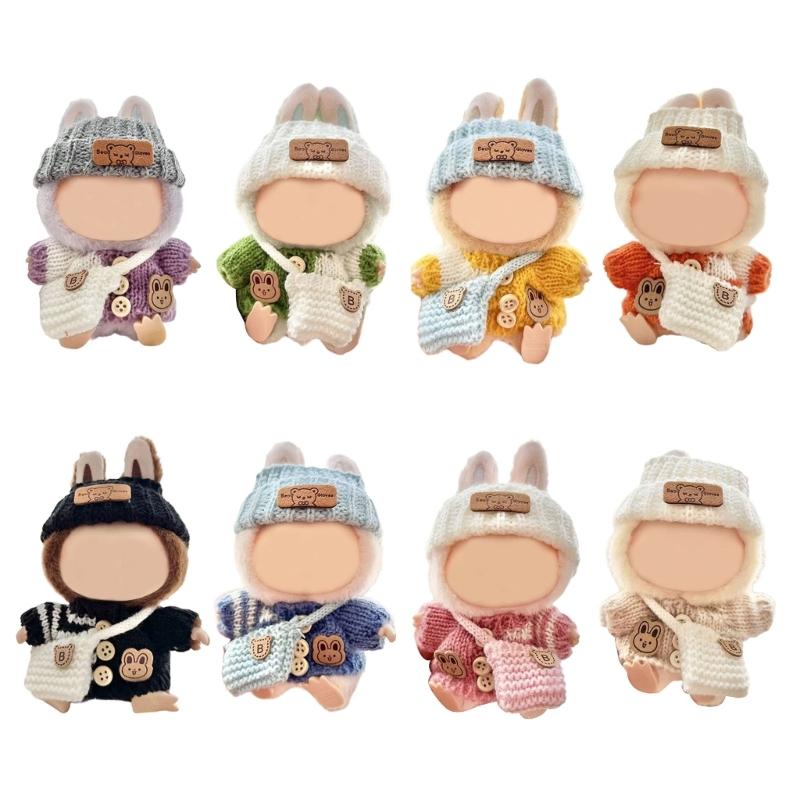 Stilvolles Strickbekleidungsset für 17cm Puppen mit modischem Pullover, Mütze und Tasche. Großartig für Sammler- und Kinderpuppen.