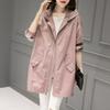 Rosa Windjacke Damen Mittellang Klein Frühling und Herbst Dünner Frühlingmantel Temperament Lässiger Mantel