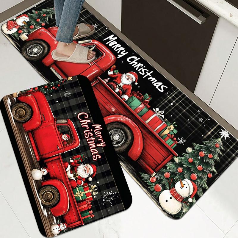 Spanisch Frohe Weihnachten Küchenteppich-Set Schneemann Gedrucktes Muster Fußmatte Maschinenwaschbare Rutschfeste Matte für Zuhause Urlaubsdeko