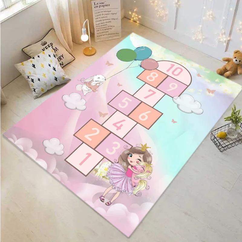 Rosa Teppich für Kinder Jungen Mädchen Cartoon Spiel Quadratische Teppiche Kindergarten Frühe Bildung Baby Krabbelmatte Heimdekor Teppich
