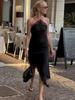 Schwarzes Spitzen-Spaghettiträgerkleid Damen Sexy Durchsichtiges Patchwork Maxi Abendpartykleid Elegant Slim Ärmellos Vestidos