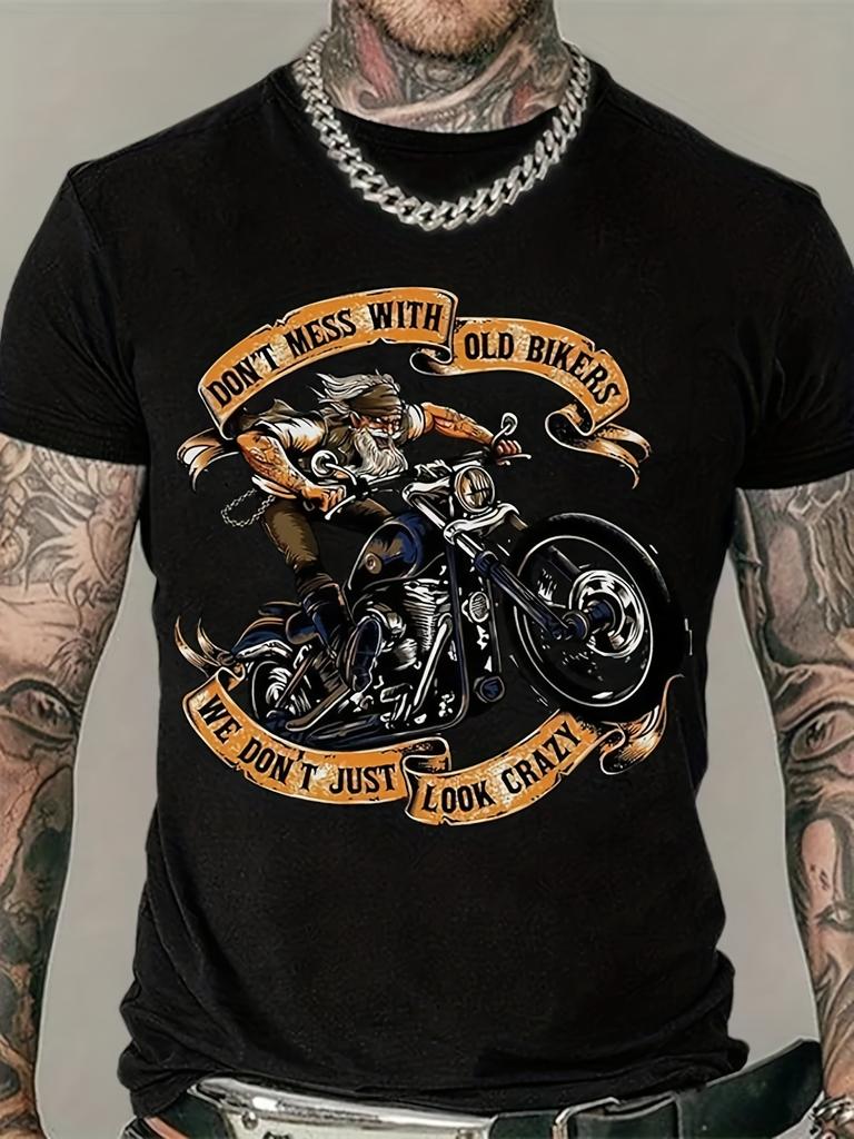 Summer Plus Herren Motorrad Old Man Print Rundhals T-Shirt 100% Reine Baumwolle Cooles Radfahren Sport Kurzarmshirt