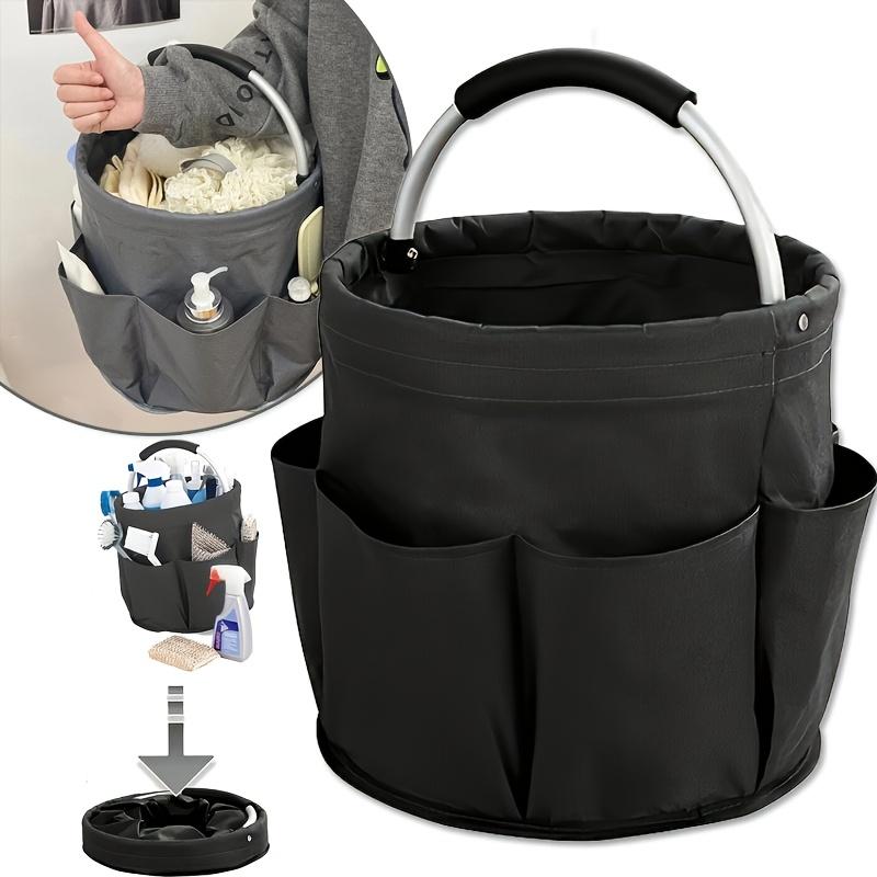 Large Black Folding Storage Organizer Bag with Handle, Multi-Pocket Picnic Tote, Outdoor Cleaning Caddy