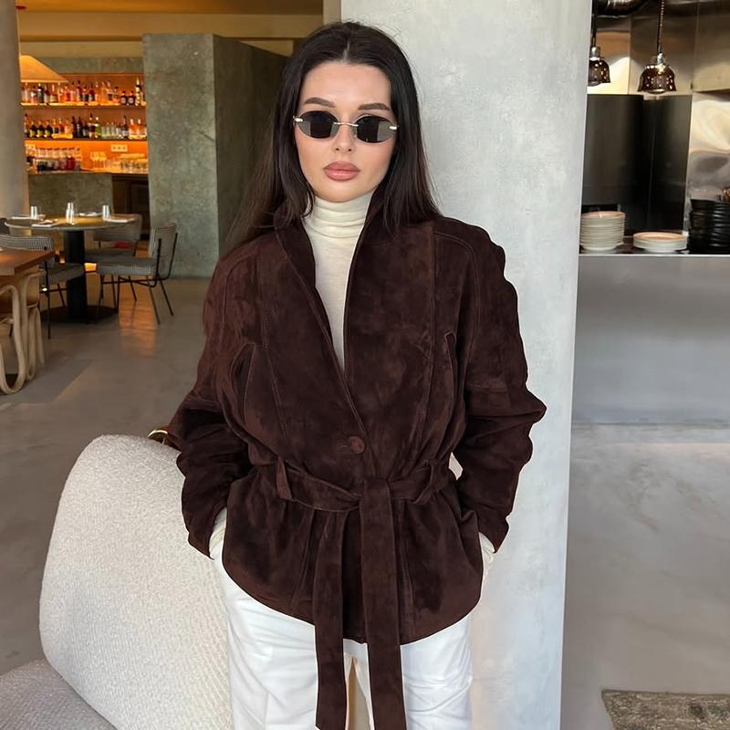 Wildlederjacken Mantel Damen Lässig Langarm Locker Patchwork Übermantel Damen Verbandjacken Neuer High Street Mantel