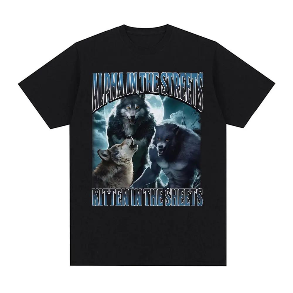 Lustiges Alpha auf der Straße Kätzchen im Bett T-Shirt Werwolf Meme T-Shirts Männer Frauen Lässig Bequem Baumwoll-T-Shirt