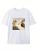Humorvolles Katze und Adam Erschaffung Parodie Grafik T-Shirt Normale Passform Kurzarm Pullover für Erwachsene - Sommer Freizeitmode Top