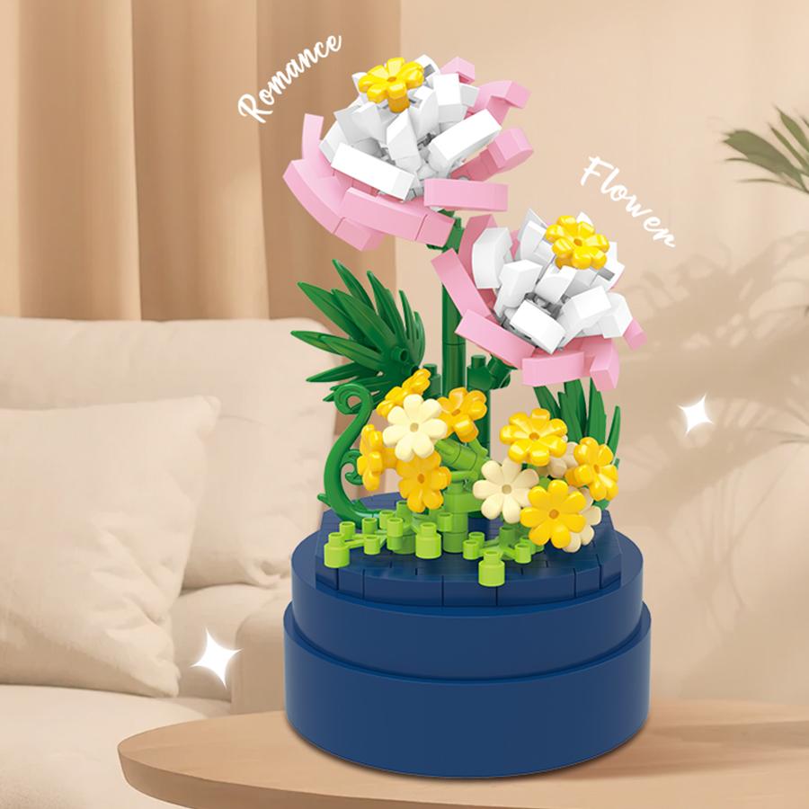 Ewige Bausteine Blumen Mikroblöcke Kinderspielzeug Plastikblume Mini-Topfpflanze DIY Weihnachtsgeschenke