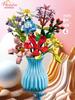 Micro Building Block with Vase Eternal Flower Bouquet Set Creative Home Decoration Ornament Compatible with
