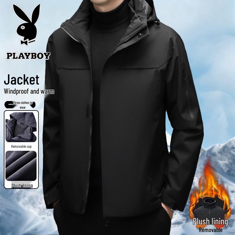 PLAYBOY Men's 3-in-1 Outdoor Fleece Lined Windproof Waterproof Jacket