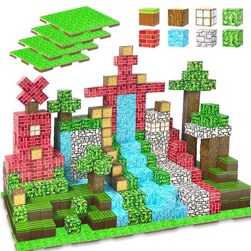 Magnetisches Bausteinspielzeug Baustein-Set, DIY-Montagespielzeug für Kinder Bausteintisch Bauspiele mit Grundplatte