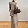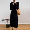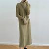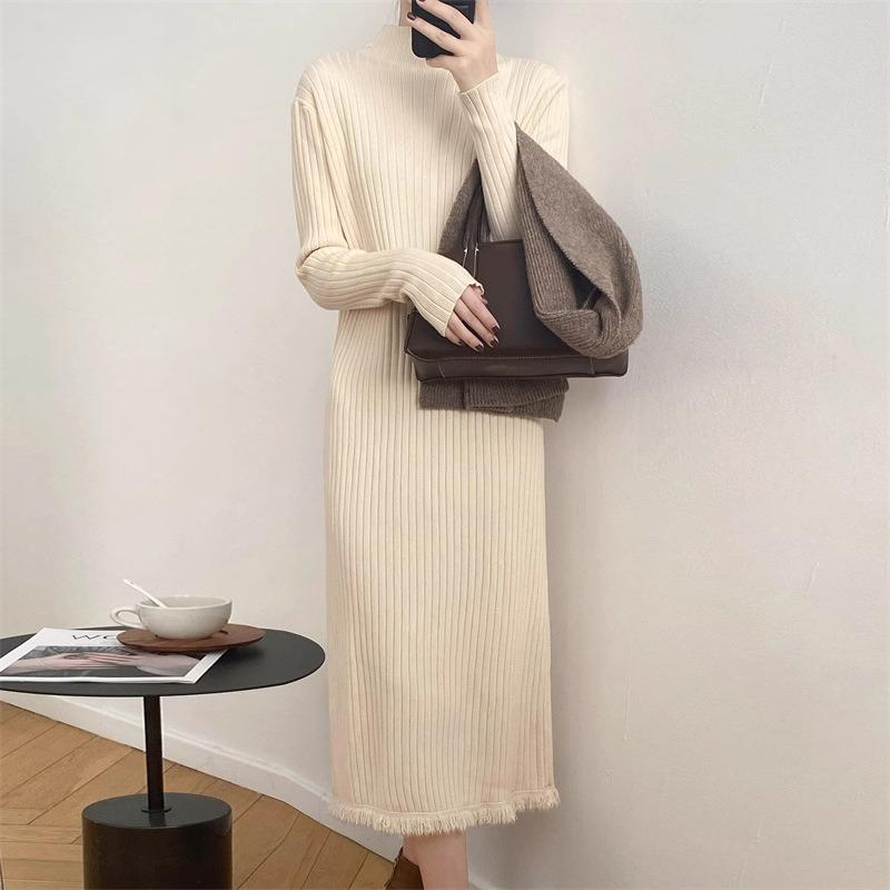 Inside long-sleeved semi-turtleneck knitted sweater dress women's autumn and winter new knee-length fringed sweater skirt women