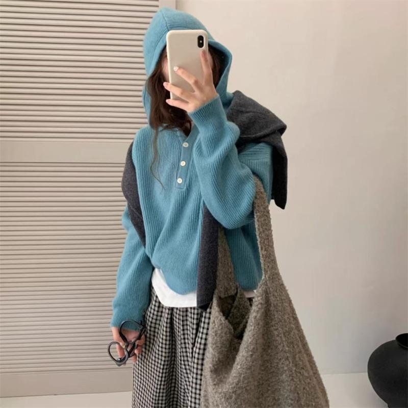 Candy-colored hooded pullover sweater for women's outerwear autumn and winter new lazy style loose and versatile casual knitted sweater top