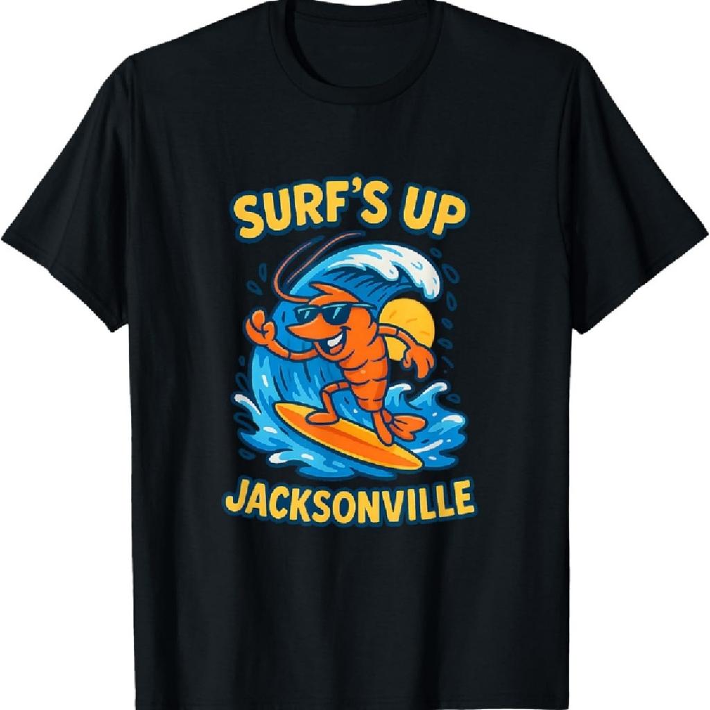 Jacksonville Surfing Shrimp Cartoon Fun Jax Beach Atlantic T-Shirt