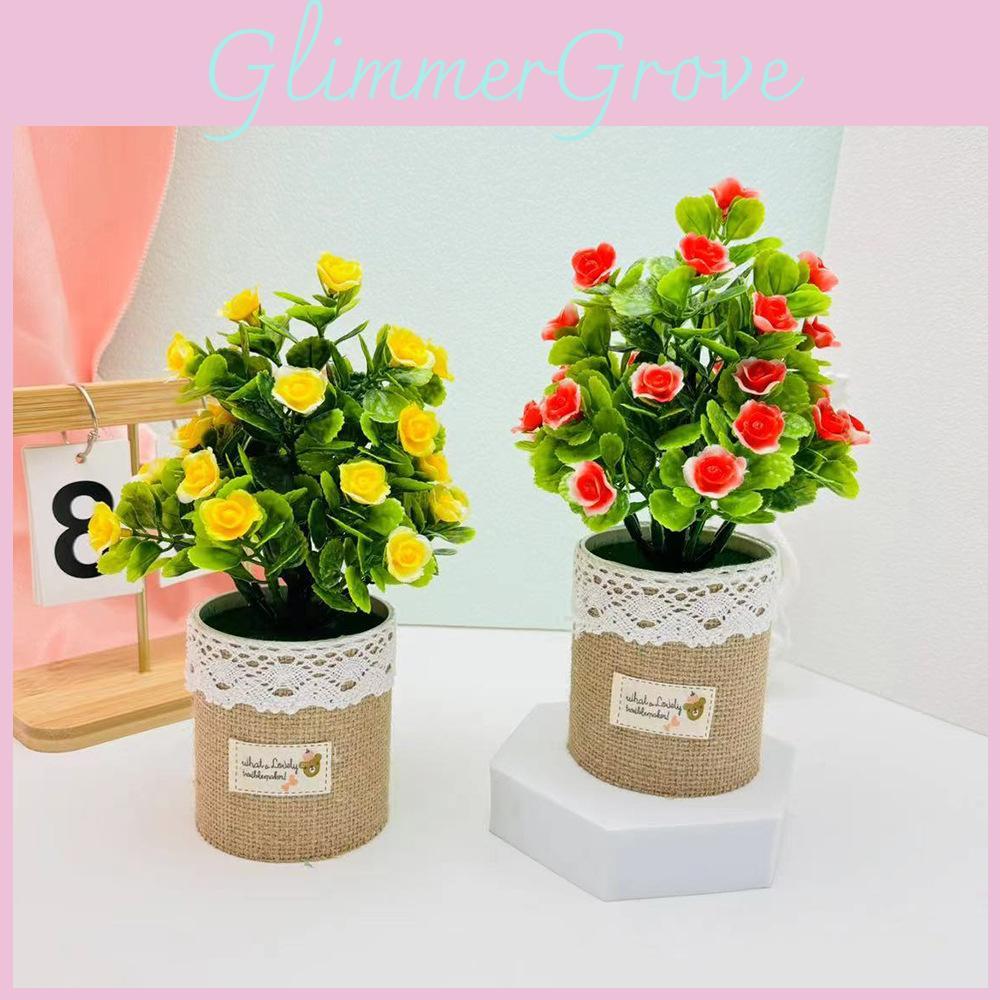Künstliche Pflanze Blumentopf mit Stoffblüten für Heim-, Büro- und Gartendekoration
